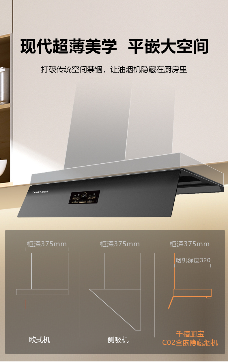 超薄全嵌全隐,上平橱柜下省空间