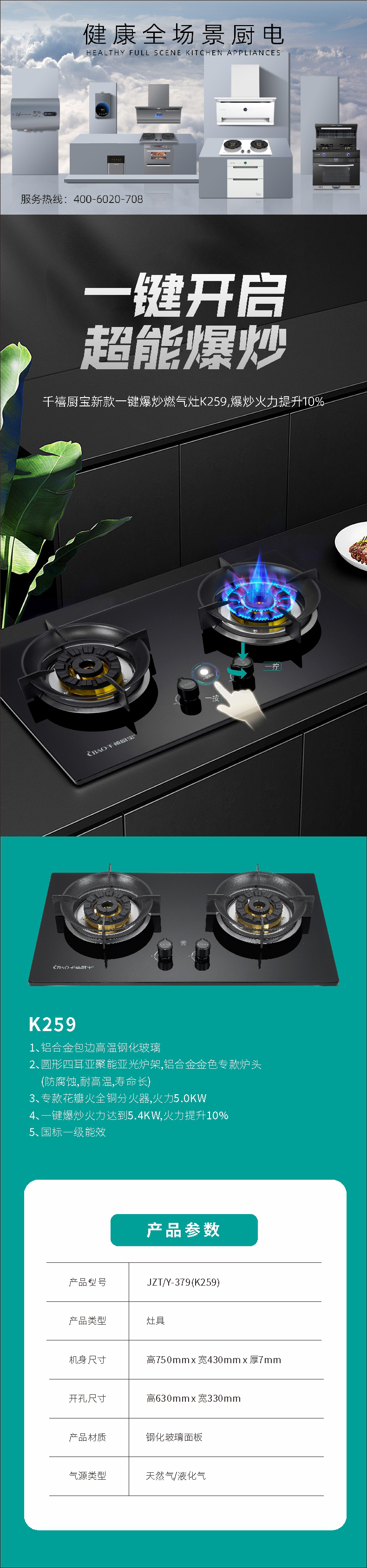 铝合金包边高温钢化玻璃,圆形四耳聚能哑光炉架,受热更均匀,一键爆炒按钮,爆炒火力可达5 4KW,专款全铜定制分火器,火力可达5 0KW,符合国家标准,一级能效