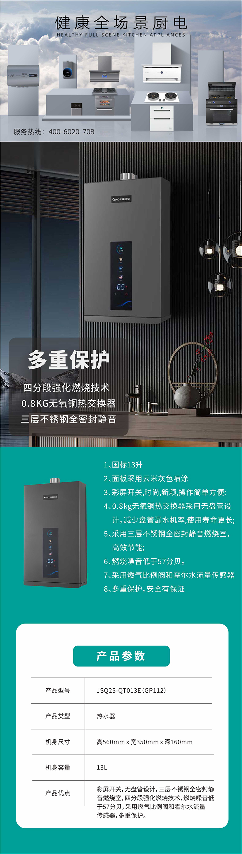 四分段强化燃烧技术 0 8KG无氧铜热交换器 三层不锈钢全密封静音