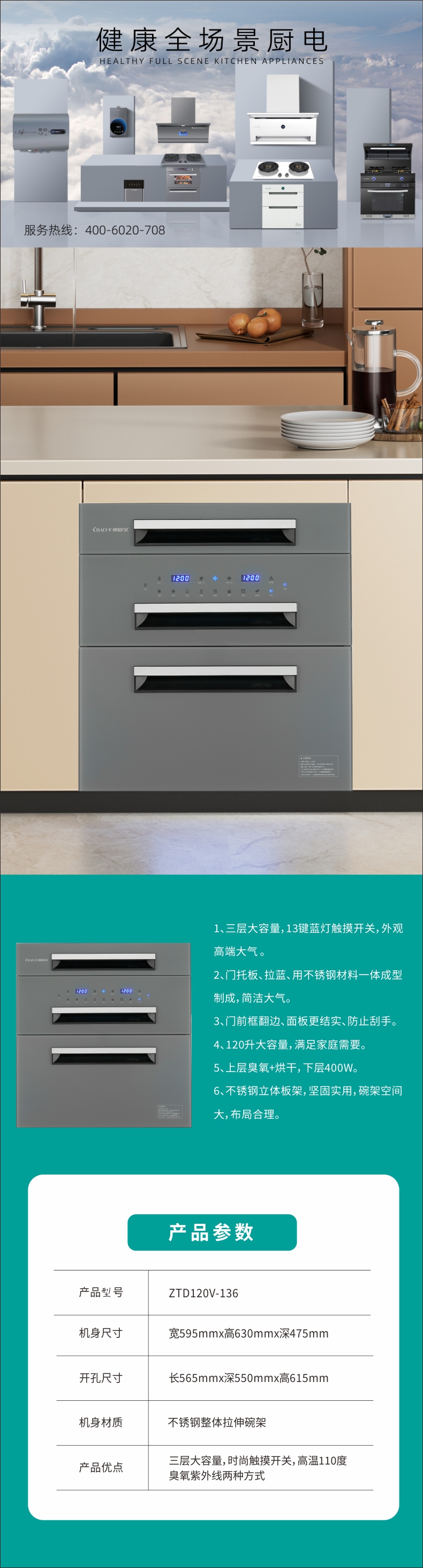三层大容量,13键蓝灯触摸开关,外观高端大气。