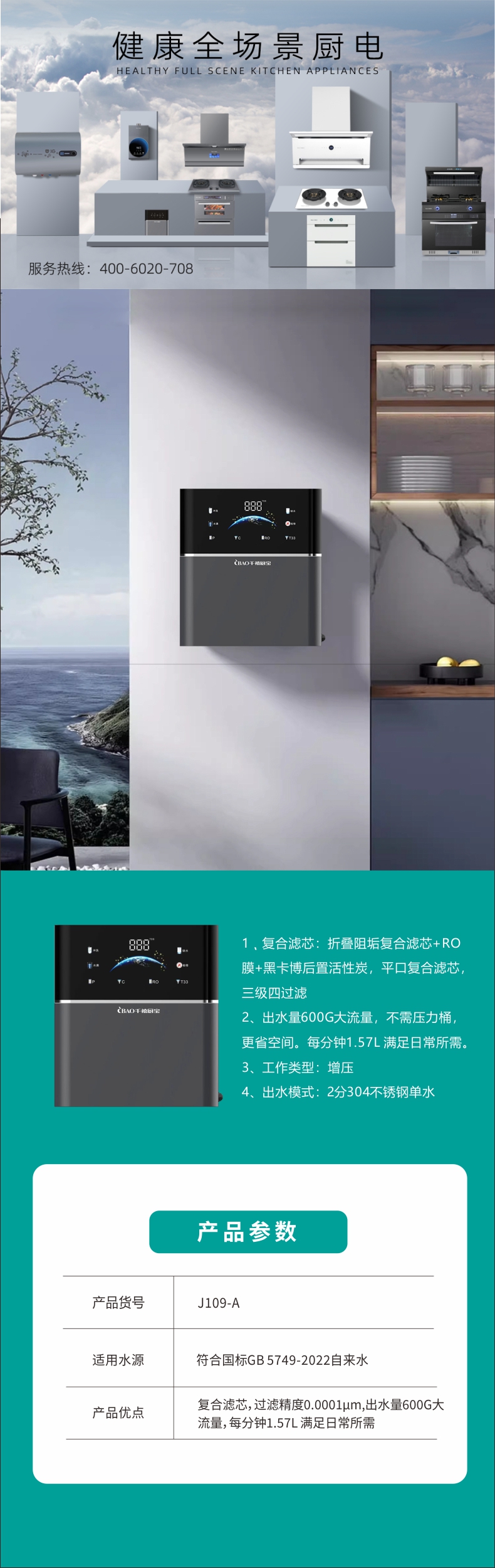 复合滤芯:折叠阻垢复合滤芯+RO膜+黑卡博后置活性炭,平口复合滤芯三级四过滤