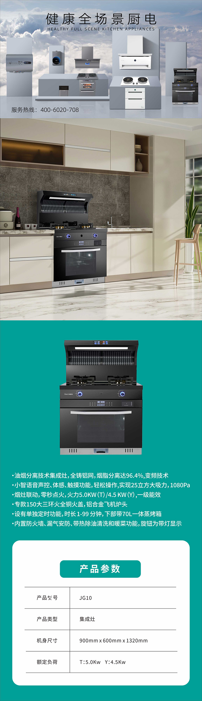 油烟分离技术集成灶,全铸铝网,烟脂分离达96 4%,变频技术