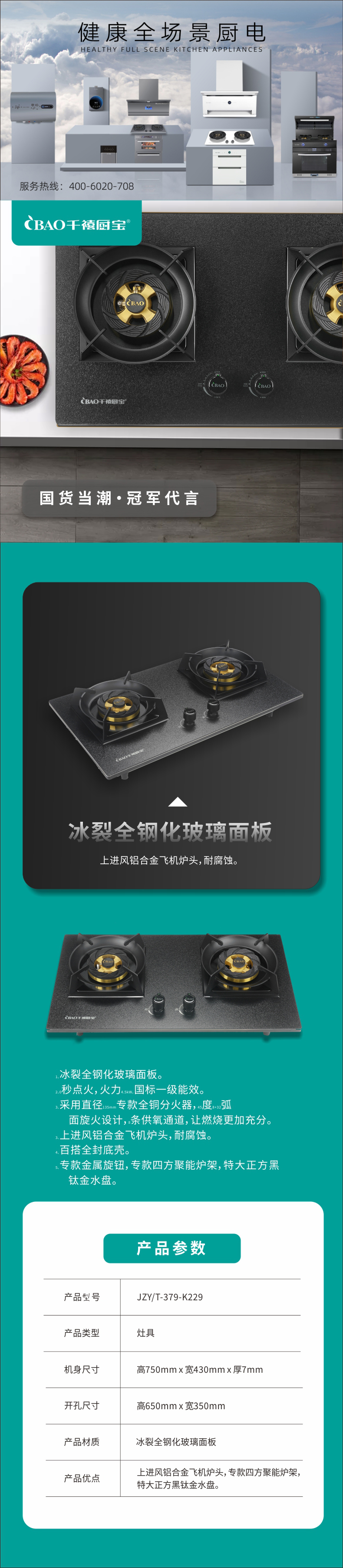 专款专利冰裂纹面板,不留指纹,好打理,采用直径135mm专款全铜分火器,0秒点火技术,火力可达4 5KW,铝合金飞机炉头,专用全封底壳,适用于大部分灶台开孔,符合国家标准,一级能效