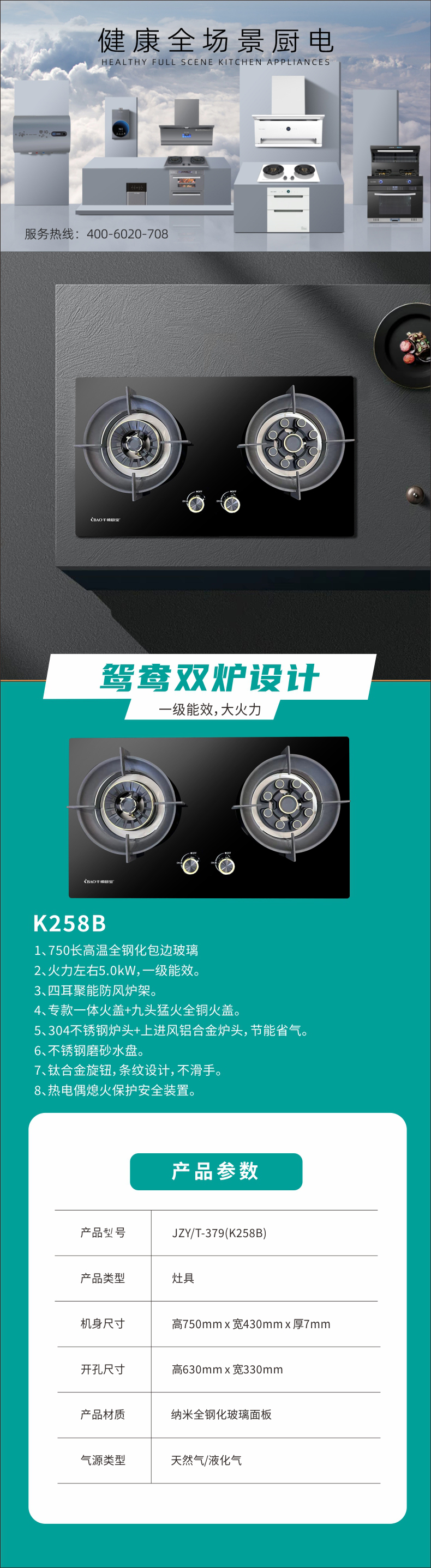 高温全钢化玻璃包边,专款一体火盖+九头猛火全铜火盖,最大火力5 0KW,符合国家标准,一级能效,上进风铝合金炉头,不锈钢磨砂水盘