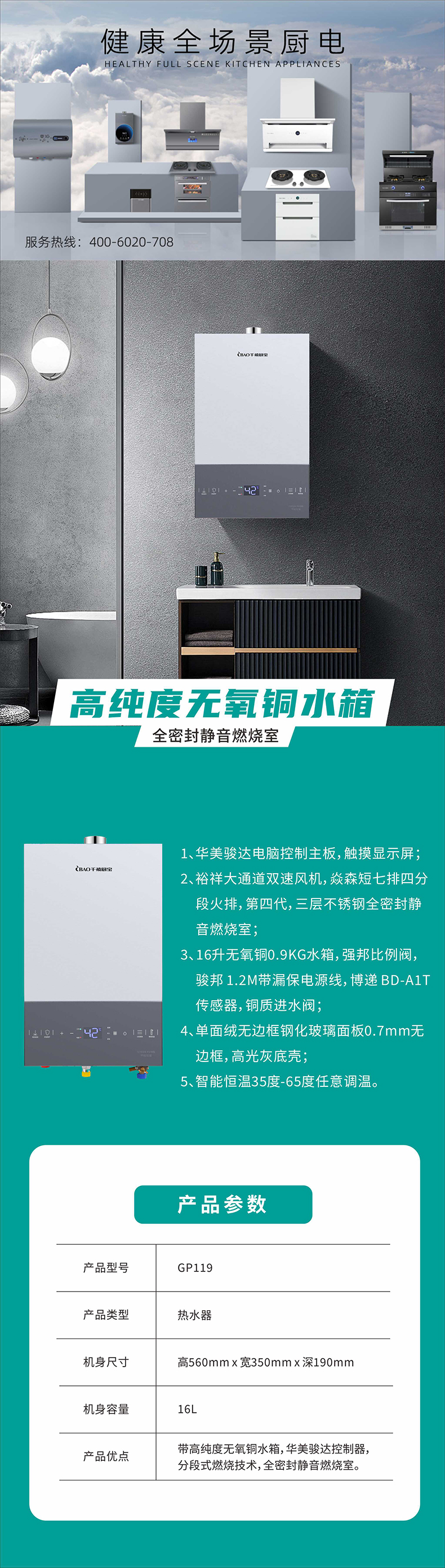 高纯度无氧铜水箱 全密封静音燃烧室